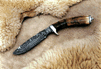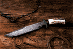 Ed Caffrey"THE MONTANA BLADESMITH"Contact Medicine River for More Information!For more than a decade Ed Caffrey has produced knives and other cutlery. His idea has always been to produce the toughest, best cutting knives possible. Ed believes that a knife must be first capable of performing its basic function: to cut and cut well. This, however, does not mean that a functional knife cannot also be a thing of beauty. After trying nearly every material and method available, Ed believes that the toughest, best cutting blades can only be produced through the proper forging and heat treating of the given steel. With this in mind, all of Ed's blades are produced via the forging method. Bearing Quality 52100 is Ed's steel of choice; he also uses 5160 and produces a wide variety of Damascus.His knives have appeared in national as well as international publications. Ed was also the first person in the state of Montana to earn the American Bladesmith Society rating of Master Bladesmith. He is one of less than 80 nationwide to have reached this level of expertise. Ed not only produces modern hunting and utility cutlery, but also "Buckskinner" blades to include friction folders and tomahawks. Ed also offers classes in Bladesmithing and produces ornamental ironwork. The Gallery images include a Wire Damascus Bowie, a Nickel Damascus drop point with amber and fossilized ivory as well as a tomahawk/drop point hunter set. Ed was inaugurated into the Montana's Circle of American Masters in Folk and Traditional Arts. Check out his smiling face in this picture from the front page of the Montana Arts Council State of the Arts March/April 2009. That's him in the big ol' hat in the back row!